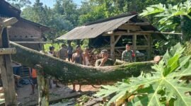 Babinsa Koramil 411-04/Trimurjo Bahu-Membahu Bersama Warga Bersihkan Pohon Tumbang
