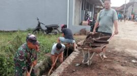 Antisipasi Cuaca Ekstrem, Babinsa dan Warga Bersihkan Parit