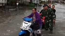Berita Aksi Tanggap Wilayah Binaan, Babinsa Koramil 411-05/Pgr Turun Tangan Tertibkan Lalu Lintas di Lokasi Banjir Kota Gajah
