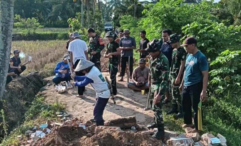 Personel TNI dari jajaran Kodim 0411/KM dan Yonif TP 943/DPC bersinergi dengan Polri serta masyarakat setempat melaksanakan gotong royong pengurukan jalan sepanjang 500 meter di Dusun Margo Rahayu 2, Kecamatan Kotagajah, Lampung Tengah. Pada Minggu (19/04/2026),