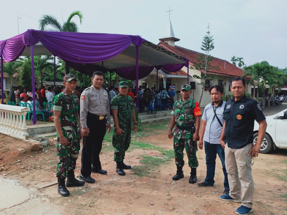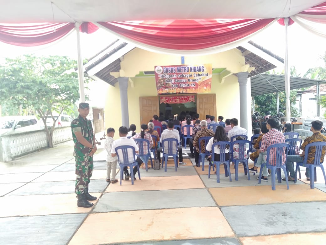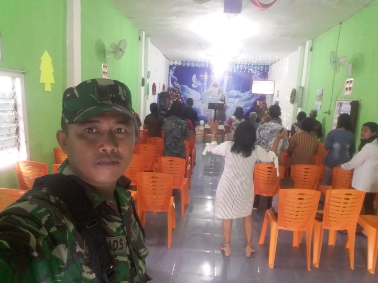 Serka Ahmad S. Babinsa Koramil 411-02/PR melaksanakan pengamanan Misa Natal 2019 di Gereja Bethel Indonesia Kampung Bumi Udik Kecamatan Anak Tuha