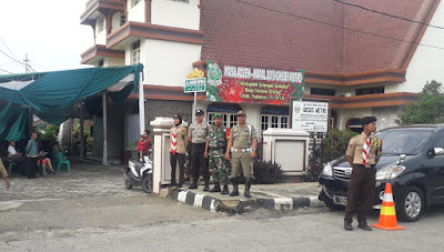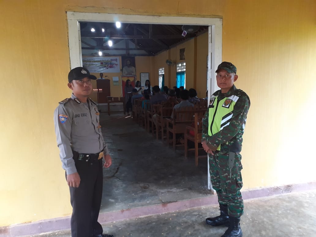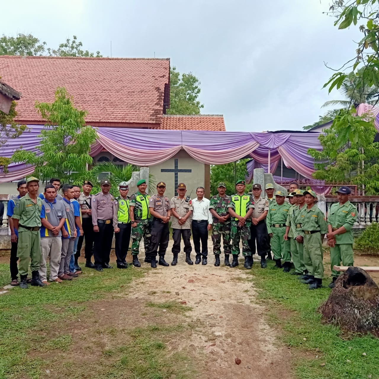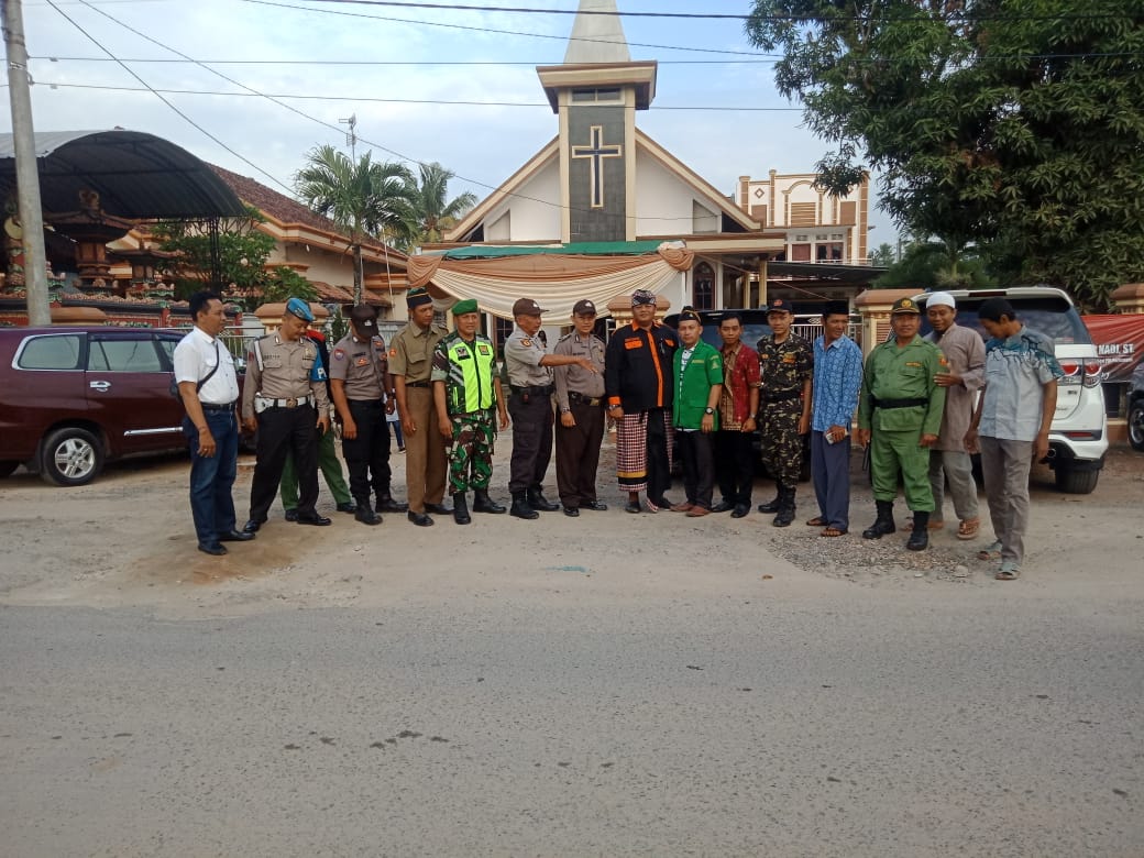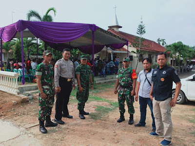 Serda Joni Setyawan Babinsa Koramil 411-07/Punggur bersama Bripka Sutrisno dan Bripka Ahmad Hendro Anggota Polsek Punggur melaksanakan Pengamanan Gereja GKSBS di Kampung Tanggul Angin Kecamatan Punggur Kabupaten Lampung Tengah.