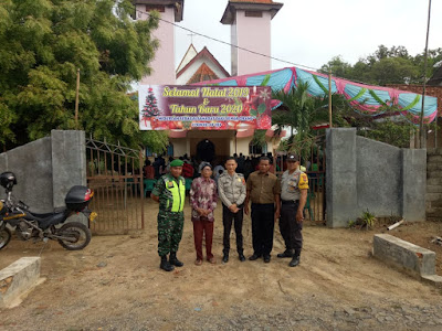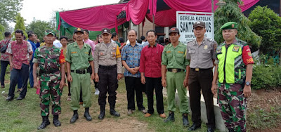 Pelda Ngatmin dan Serma Subagiyo Anggota Koramil 411-04/GS melaksanakan pengamanan Pelaksanaan Misa Natal 2019 di Gereja Santa Petrus Kampung Wates Kecamatan Bumi Ratu Nuban