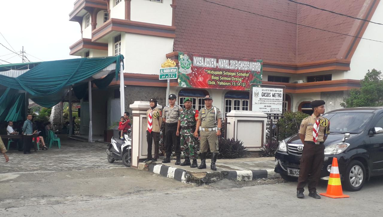 Pengamanan dan monotoring Kegiatan Ibadah Kebaktian (Misa) Natal 2019 bertempat di Gereja GKSBS Metro Jalan Raden Intan Kelurahan Imopuro Kecamatan Metro Pusat