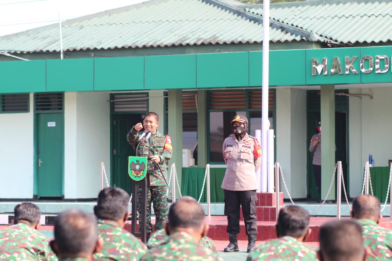 “Untuk itu masing-masing personel agar mengingatkan kembali keluarganya untuk tetap melaksanakan protokol kesehatan, sampai saat ini pilar yang paling kuat adalah tetap bersatunya TNI POLRI dan ini harus tetap kita jaga” pesannya.