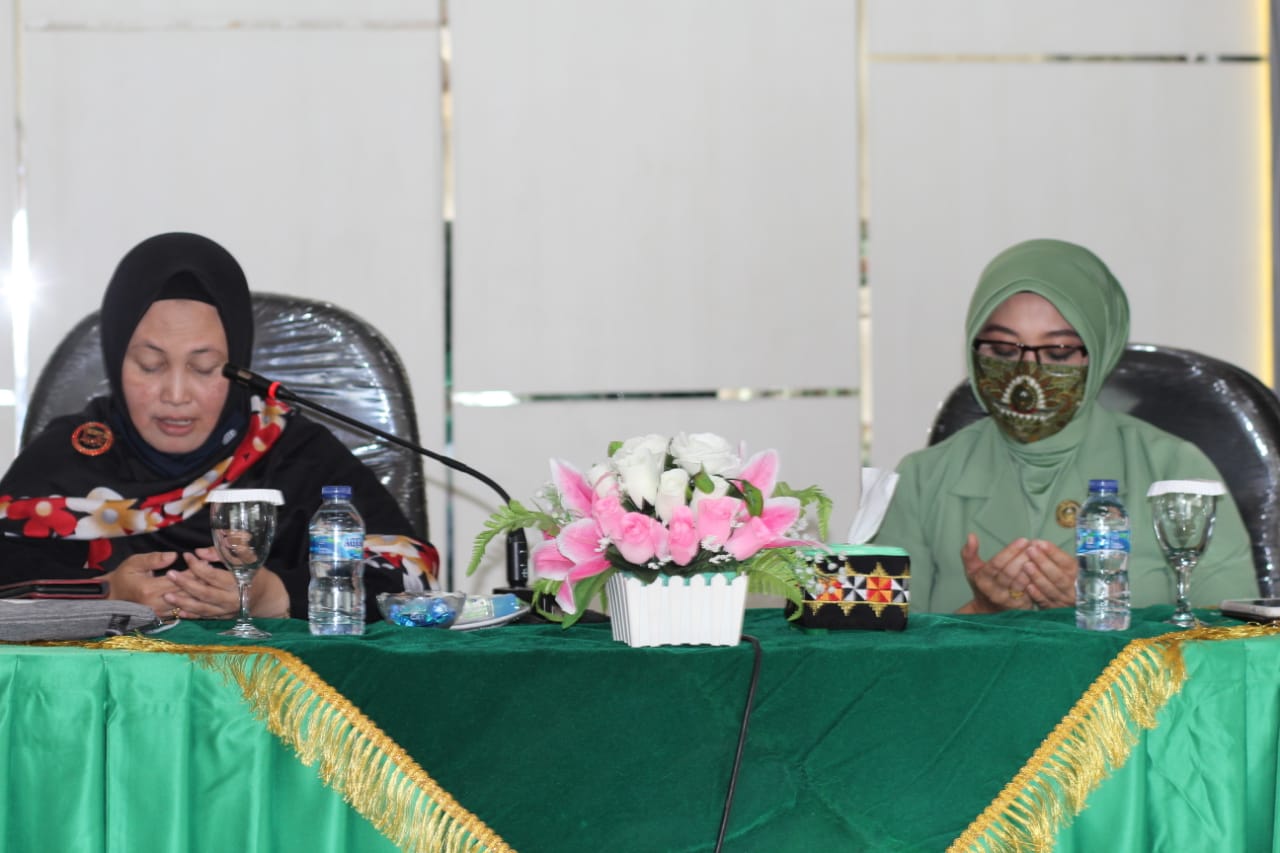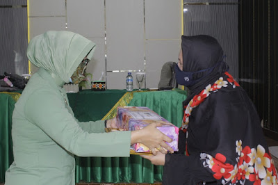 Ny. Novi Andri Hadiyanto memimpin kegiatan arisan bulanan Persit Kartika Chandra Kirana Cabang XXXI Dim 0411 Koorcab Rem 043/Gatam PD II/Sriwijaya di Aula Pamungkas Makodim 0411/LT. Jumat (15/01/21).