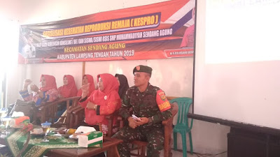 Serda Een Setiyono Babinsa Sendang Agung Koramil 411-01/Kalirejo, menghadiri acara Sosialisasi Kesehatan Reproduksi Remaja (Kespro) bagi Guru BK dan siswa-siswi SMP Muhammadyah 1 Sendang Agung Kecamatan Sendang Agung Kabupaten Lampung Tengah. Selasa (26/11)