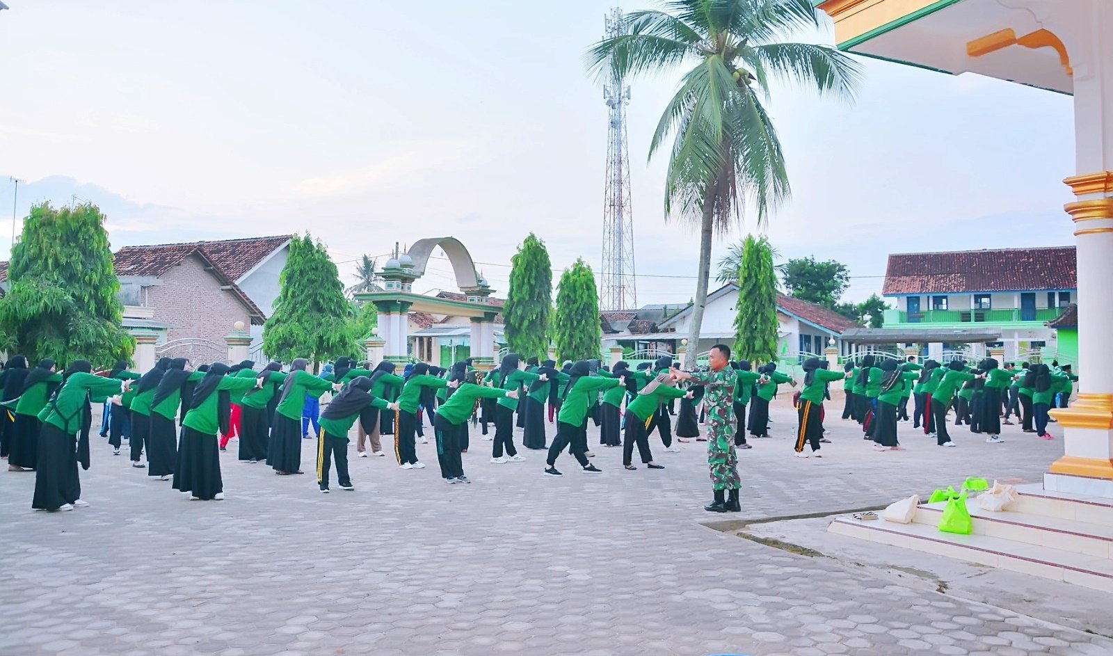 Dua personel Babinsa Koramil 411-13/Bangunrejo, Serda Heri Widodo dan Serda Satria Dedi bertindak sebagai instruktur senam pagi kegiatan Pelatihan Dasar Kepemimpinan dan Kaderisasi Pengurus Nahdlatul Ulama (PDPKPNU) ke XXXIII MWCNU bertempat di halaman SMK Al-Ikhsan, Kampung Sukanegara, Kecamatan Bangunrejo, Lampung Tengah. Sabtu (06/09/2025)