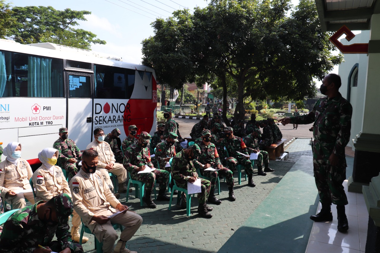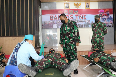 Menyambut peringatan HUT TNI ke-76 Tahun 2021, Kodim 0411/KM menggelar kegiatan bakti sosial donor darah bersinergis bersama PMI Kota Metro bertempat di Aula Pamungkas Makodim, Jl. Veteran Bedeng 22 Kelurahan Hadimulyo Barat, Metro, Kamis (23/09/2021).