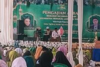 Penerangan Kodim 0411/KM Serka Supriyadi, Babinsa Koramil 411‑04/Trimurjo, menghadiri Pengajian Akbar Muslimat NU dalam rangka memperingati Isra Mi’raj Nabi Muhammad SAW 1447 H di…