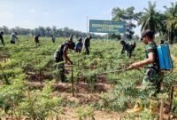 Penerangan Kodim 0411/KM Personel Satgas TMMD ke-125 Kodim 0411/KM menggelar kegiatan Ketahanan Pangan di RT 3 Dusun II, Kampung Sukanegara, Kecamatan Bangunrejo, Kabupaten Lamteng,…