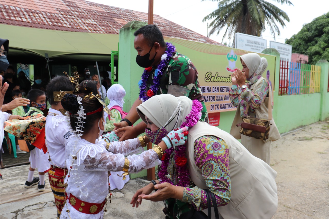 “Selaku Pembina dan sekaligus Dandim 0411/KM, berserta Ibu Novi Andri Hadiyanto selaku ketua Yayasan TK Kartika Jaya Koordinatoar XXXI Dim 0411/KM, Korem 043 II-Swj, kami memperkenalkan diri sekaligus melaksanakan kunjungan kerja dan silahturahmi bersama orang tua murid dan anak anak TK sekalian” imbuhnya.