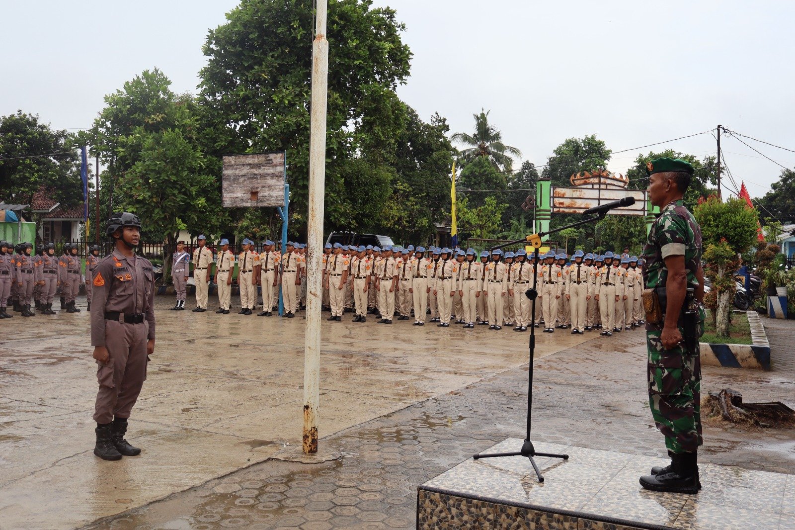 Dandim 0411/KM letkol Inf Noval Darmawan,S.H.,M.I.P. diwakili Pasiops Kapten Inf Gunawan bertindak sebagai Inspektur Upacara Pembukaan Pendidikan Dasar Militer Angkatan XXX SMA Taruna Gajah Mada Kota Metro Tahun 2025 di Jl. Raya Tempuran No.17, Ganjaragung, Metro Barat. Kamis (02/10/2025)