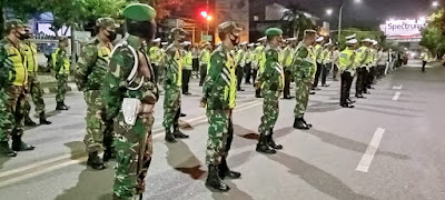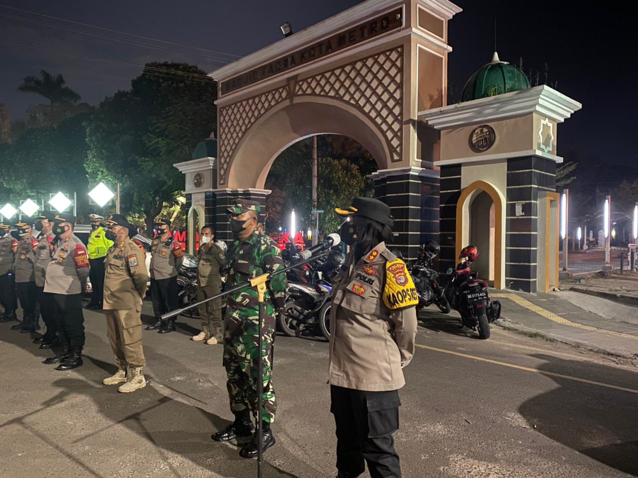 Dandim 0411/KM Letkol Inf Andri Hadiyanto,M.Han. dampingi Kapolres Metro AKBP Retno Prihawati,S.Sos.,S.I.K.,M.H., memimpin kegiatan Apel Gabungan dan Operasi Yustisi Skala Besar yang digelar serentak di seluruh wilayah dalam rangka Pemberlakukan Pembatasan Kegiatan Masyarakat (PPKM) Darurat, Jumat malam (23/07/2021).