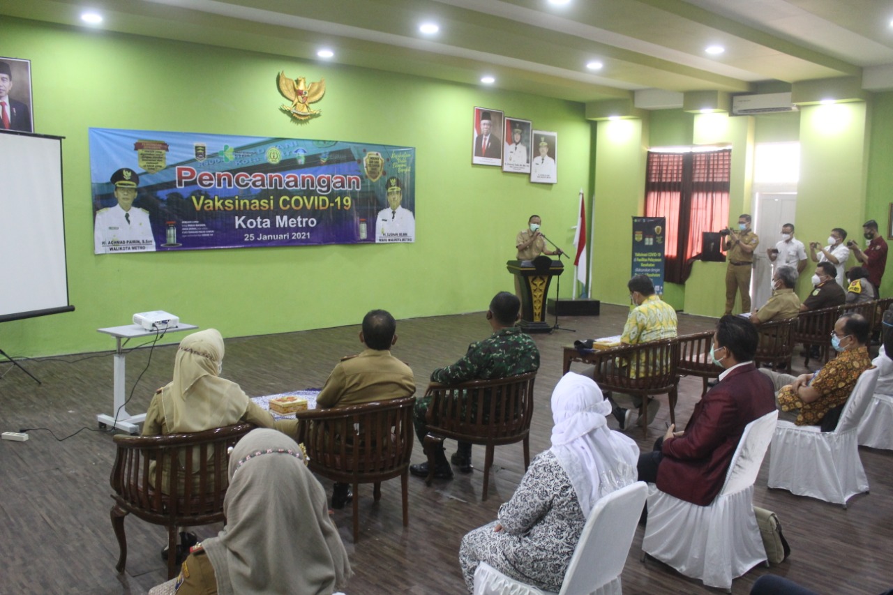 Menanggapi laporan tersebut Wali Kota Metro Hi. A Pairin,S.Sos, mengatakan “Hari ini adalah Pencanangan Vaksinasi Covid-19 di Kota Metro, saya mengucapkan terima kasih dan mengapresiasi kepada Dinas Kesehatan yang sudah memberikan, atau mengadakan vaksinasi tahap pertama”.