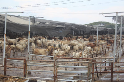Selanjutnya Danrem 043/Gatam beserta rombongan berkenan meninjau lokasi kandang-kandang penggemukan sapi yang menampung sekitar 20.000 ekor sapi. dipandu langsung oleh Staf Bidang Produksi PT. Santosa Agrindo dengan menggunakan kendaraan Bus keliling.Â