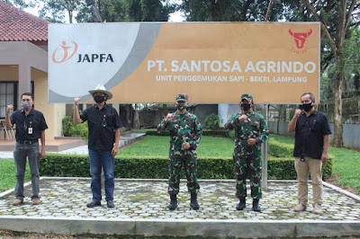 Dimulai dari PT. Santosa Agrindo yang terletak di Desa Bumi Aji Kecamatan Anak Tuha Kabupaten Lampung Tengah, Danrem 043/Gatam disambut oleh Bpk Zamzam Qodarudin,S.P. Kepala Unit PT Santosa Agrindo, Dandim 0411/Lampung Tengah Letkol Czi Burhannudin,S.E.,M.Si dan langsung menuju ruang transit untuk menerima paparan tentang keberadaan dan cara produksi PT Santosa Agrindo yang bergerak di bidang penggemukan sapi lokal.