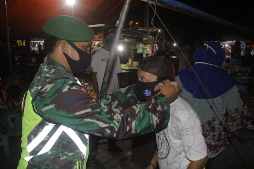 Saat memberikan arahan, Dandim 0411/LT mengatakan “Malam ini, kita akan memberikan sosialisasi dan pemberian masker kepada masyarakat”