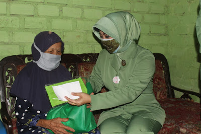 Usai melaksanakan kunjungan, Dandim bersama Ketua Persit melanjutkan kegiatan Bhakti Sosial di Kampung Poncowati dengan memberikan bantuan/bingkisan sembako kepada janda warakawuri diantaranya ibu Daliman (98 Th), ibu Toyib. (87 Th) dan ibu Sarju.(87 Th).Â