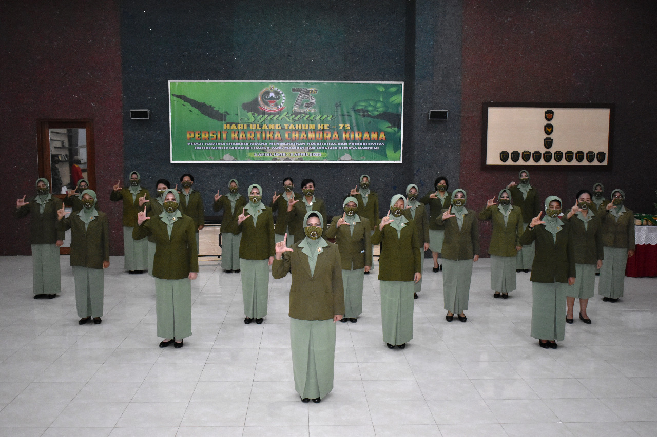 Kegiatan syukuran HUT Persit KCK yang ke-75 Tahun 2021 ini bertemakan, “Persit KCK meningkatkan kualitas dan produktivitas untuk menciptakan keluarga yang mandiri dan tangguh di masa pandemic”,