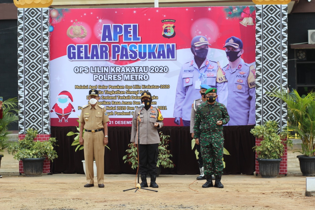 Setelah melaksanakan pemeriksan pasukan dan penyematan pita, Pimpinan Apel (Kapolres Metro) didampingi Wali Kota Metro dan Dandim 0411/LT mengatakan “Operasi pengamanan masyarakat dan tim gabungan TNI, Polri, Pemkot Metro dan elemen masyarakat ini akan digelar selama 15 hari, terhitung mulai tanggal 21 Desember 2020 s.d. 4 Januari 2021” ucap Kapolres Metro