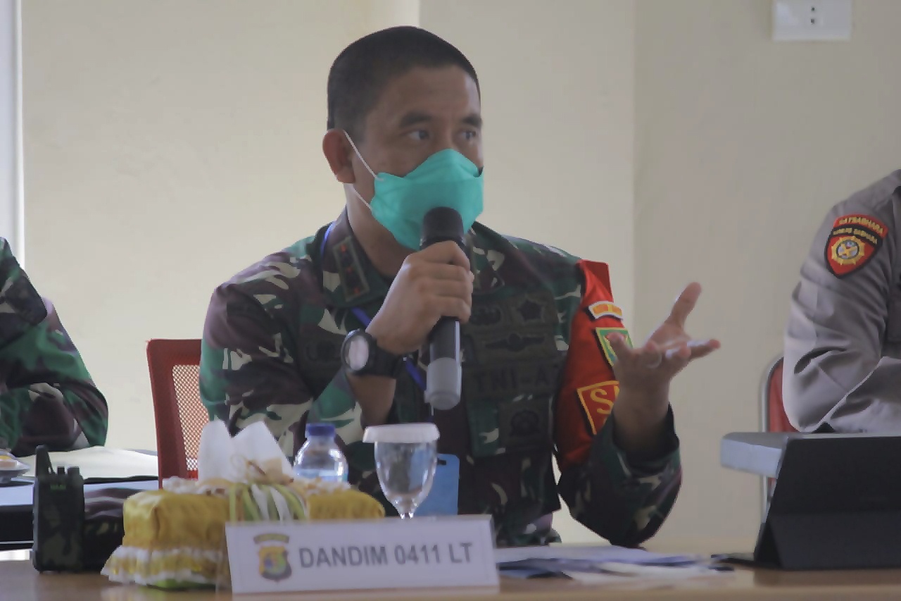 Sementara itu Dandim 0411/LT menambahkan sedikit arahan, analisa dan evaluasi yaitu pada saat kelangkaan Ambulance, dalam penanganan pasien yang terindikasi PDP, agar cepat berkoordinasi dengan pihak Dinkes. “Bagi pasien yang masuk dalam PDP, perlu dicek kembali, oleh Pihak Dinsos, terutama masalah kondisi ekonominya”.