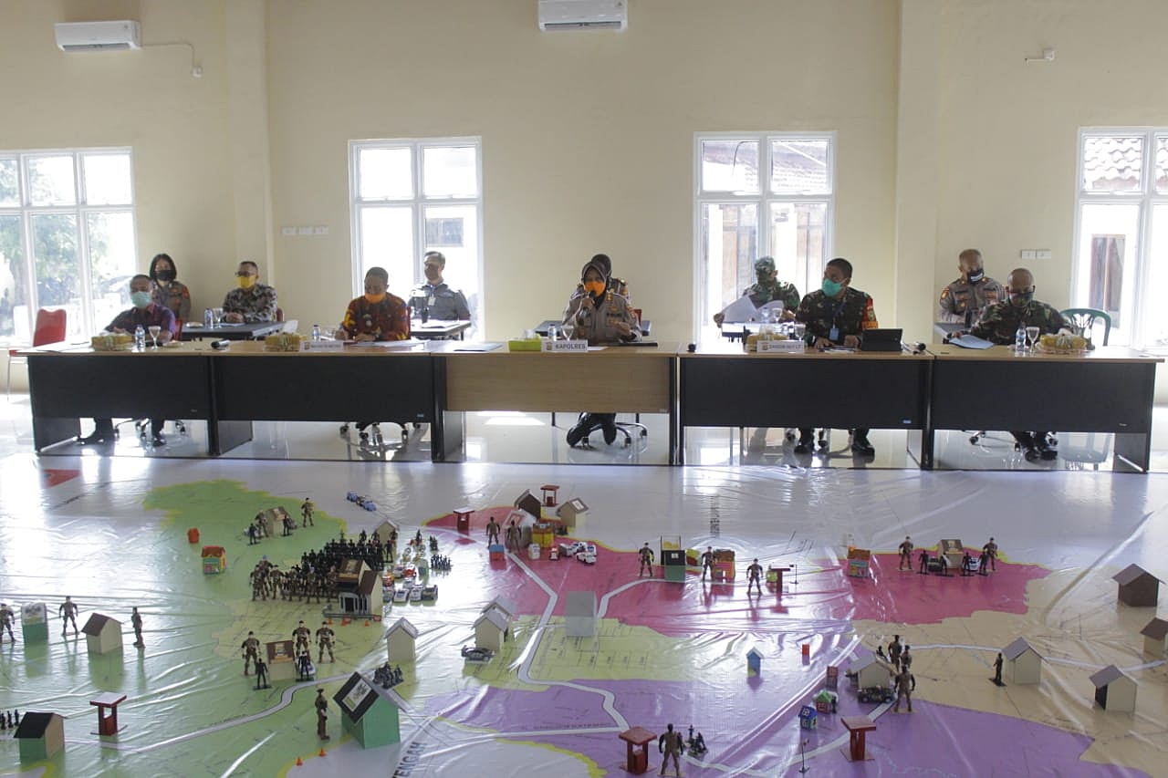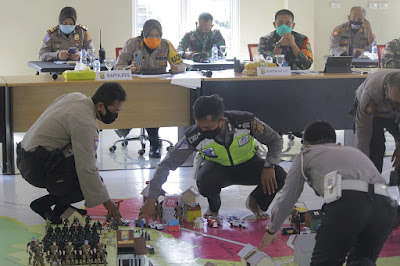 Kamis (22/04) bertempat di Aula “Sanika Satyawada” Polres Kota Metro dilaksanakan Kegiatan Tactical Floor Game (TFG) Sispamkota Kontijen dalam Karantina Wilayah Parsial, Ops Aman Nusa II Krakatau 2020, wilayah Hukum Polres Kota Metro.