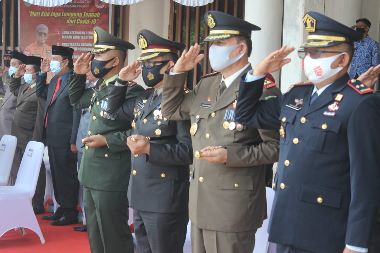 Upacara Pengibaran Peringatan HUT RI ke 75 Tahun 2020 Kabupaten Lampung Tengah di laksanakan di Halaman Kantor Bupati Lampung Tengah ,Gunung Sugih dengan tema Indonedia Maju. Senin (17/08/2020)