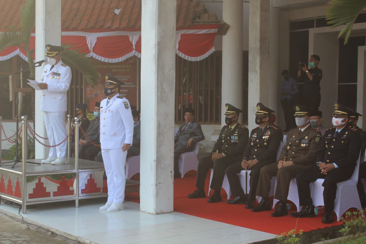 Pada kesempatan tersebut Bupati Lamteng membacakan amanat Gubernur lampung “Peringatan HUT Rl di tengah pandemi Covid 19 dan tetap melaksanakan Protokol Kesehatan, dari sinilah kita seluruh warga negara untuk melaksanakan lompatan dalam segala bidang untuk memajukan pembangunan dan membuat trobosan perubahan untuk mewujudkan Indonesia Maju Lampung Berjaya”.
