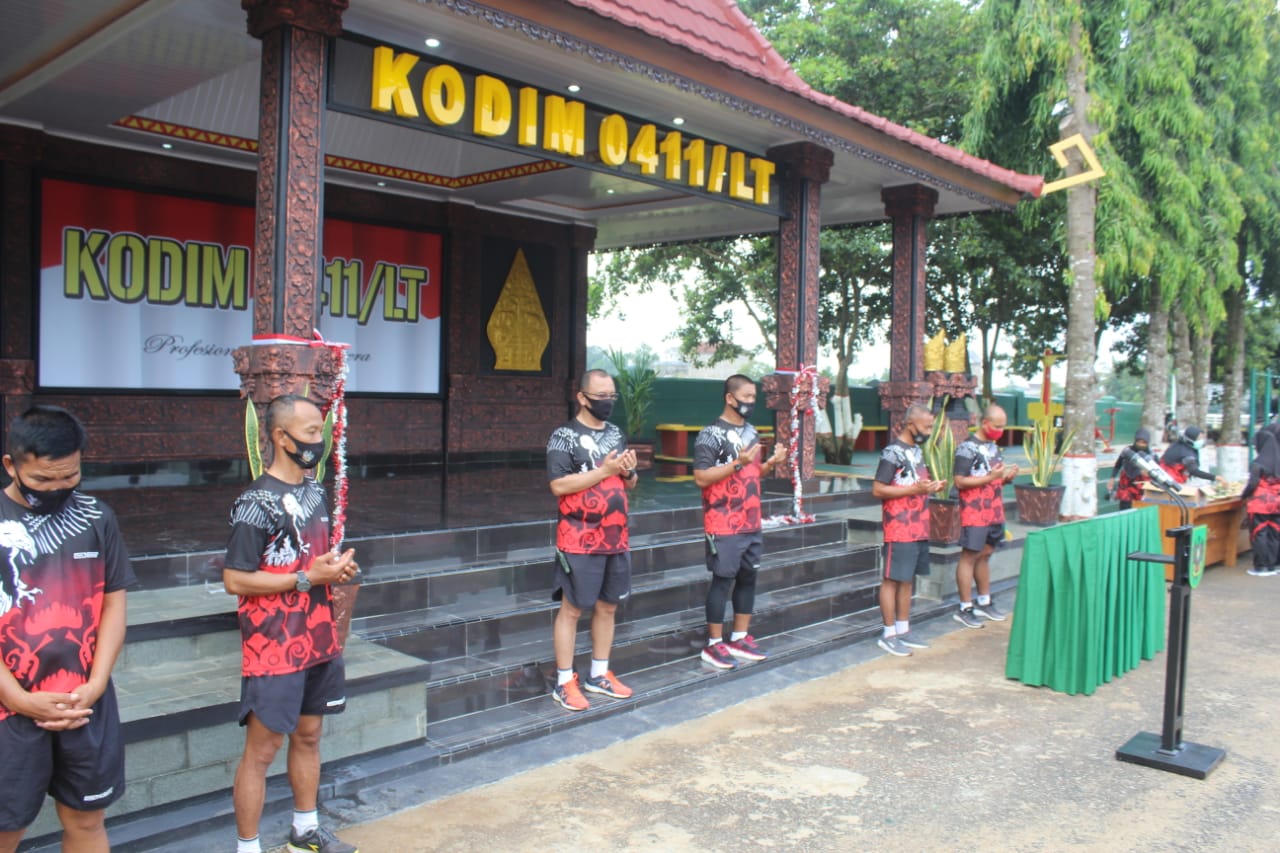 Personil Kodim yang terdiri dari Perwira Staf, Danramil, Anggota dan PNS Kodim 0411/LT memulai kegiatan dengan aerobic bersama dilanjutkan mengikuti tertib acara didahului Pembukaan, Sambutan Komandan Kodim, Penanda tanganan Prasasti, Pemotongan pita, Doa dan Pemotongan Tumpeng serta Penutup.