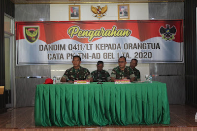 Dalam pengarahannya Dandim 0411/LT mengucapkan terima kasih kepada Orang Tua/Wali Calon Cata PK TNI AD TA. 2020 yang sudah hadir dalam kegiatan pengarahan di Aula Pamungkas Kodim 0411/LT dikarenakan kegiatan tersebut merupakan tahapan yang harus dilaksanakan oleh seluruh Jajaran Kodim yang mendapatkan alokasi pendaftaran Calon Tamtama.