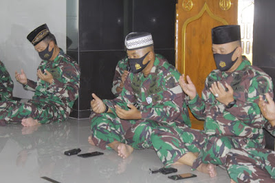 Dalam Rangka HUT TNI KE-75 Tahun 2020, personel Kodim 0411/LT menggelar kegiatan doa bersama dan syukuran di Masjid It-Tihad Makodim Jalan Veteran Kelurahan 22 Hadimulyo Barat Kota Metro. Selasa (06/10)