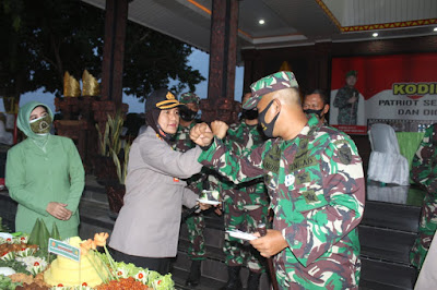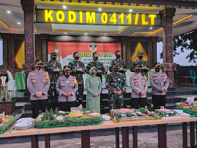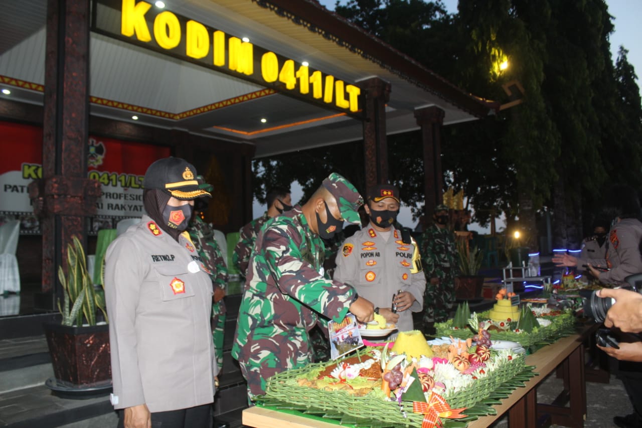 Kapolres Metro AKBP Retno Prihawati,S.Sos,.S,IK,.M.H dan Kapolres Lamteng AKBP Popon Ardianto Sunggoro,S.IK,S.H. memberikan surprise di hari jadi Tentara Nasional Indonesia (TNI) yang ke 75 ke Makodim 0411/LT Jalan Veteran Kelurahan 22 Hadimulyo Barat Kota Metro. Senin sore (05/101/2020)