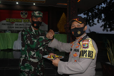 Kekompakan TNI-Polri tersebut dilaksanakan sederhana dengan menerapkan protokol kesehatan mengingat masa pandemi Covid 19 belum usai, “Dalam menjaga dan memelihara kesatuan serta persatuan NKRI, sinergitas dan solidaritas antara TNl – POLRI tidak akan bisa digoyahkan, sehingga kami akan selalu bersama-sama melaksanakan tugas untuk negeri dan masyarakat, saat ini target utama kami adalah bersama-sama berusaha mencegah penyebaran Covid 19 di wilayah binaan” harap pria lulusan Akmil tahun 2001 dengan penuh semangat. (DL)Â