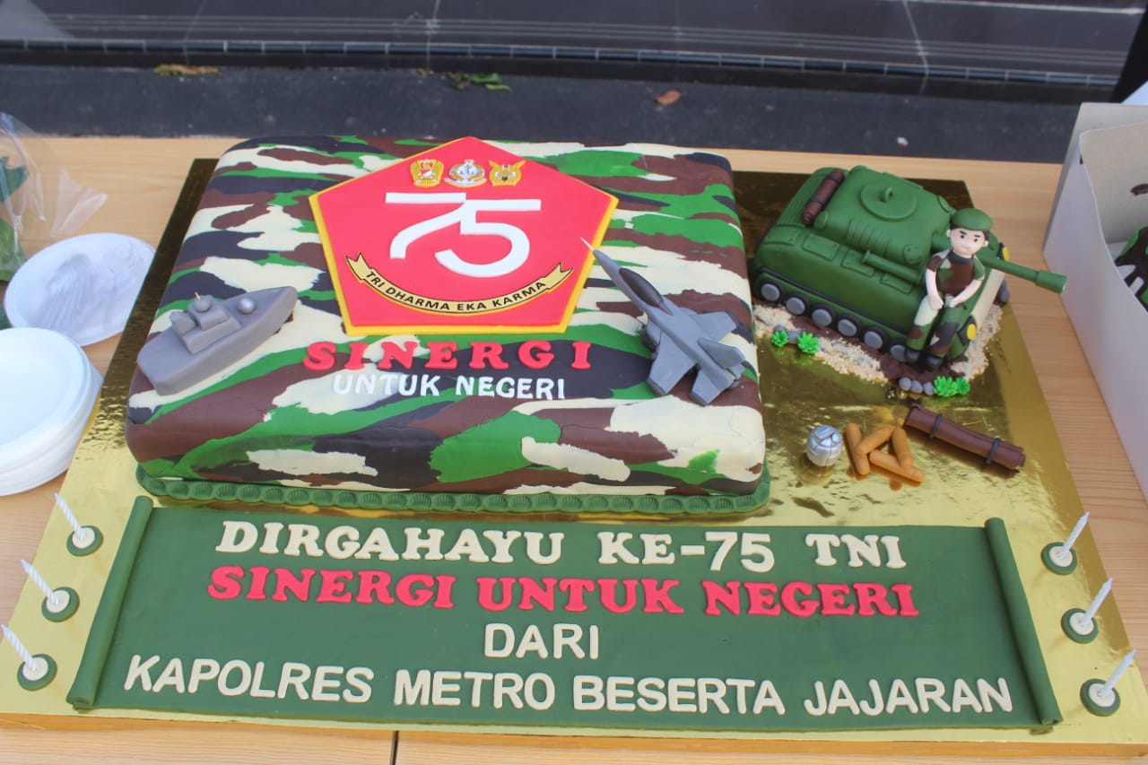 â€Kami bersama keluarga besar Polres Metro dan Lampung Tengah mengucapkan selamat Dirgahayu TNI yang ke 75, semoga TNI tetap Jaya dalam bersinergi untuk Negeri” ucap AKBP Retno.