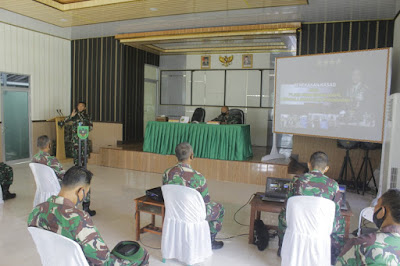 Komandan Kodim 0411/LT Letkol Czi Burhannudin,S.E.,M.Si didampingi Kasdim Mayor Inf Ucok Namara dan Pabung Lamteng Mayor Inf Bagus S. memberikan arahan tentang Penekanan Kasad Jenderal TNI Andika Perkasa kepada para Perwira Staf, Danramil dan Babinsa hasil dari mengikuti Rapat Koordinasi dan Evaluasi Pelaksanaan Pembatasan Sosial Berskala Besar (PSBB) di Aula Pamungkas Makodim 0411/LT, Sabtu (23/05).