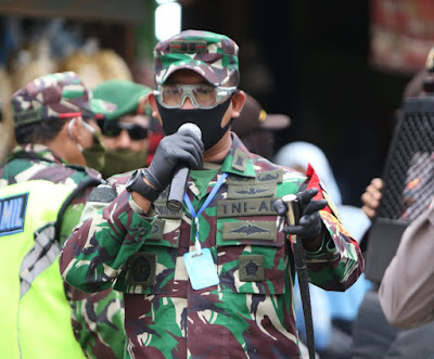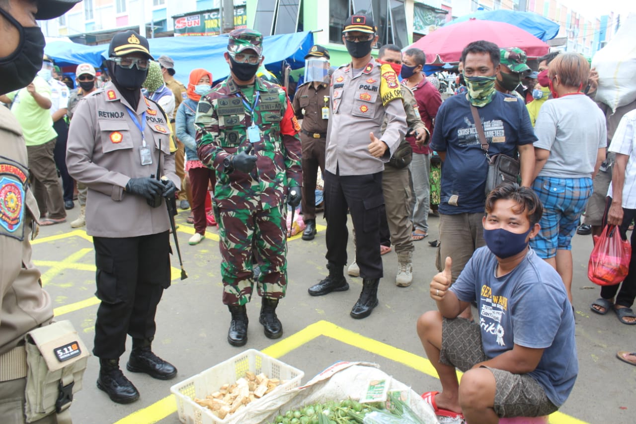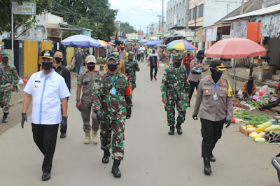 DANDIM 0411/LT TEGASKAN DISIPLIN PHYSICAL DISTANCING KEPADA WARGA PASAR KOTA METRO