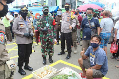 Unsur pimpinan yang terdiri dari Wakil Walikota, Kapolres, Dandim dan Ketua Dewan tersebut turun tangan langsung ke tengah-tengah pasar, penerapan Physical Distancing benar-benar tegas harus di laksanakan oleh seluruh elemen masyarakat. (DL)