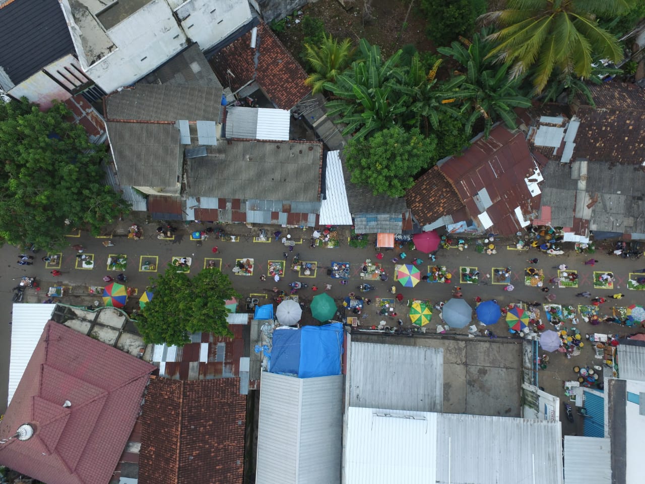 foto keadaan pasar setelah penerapan Physical Distancing