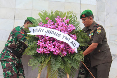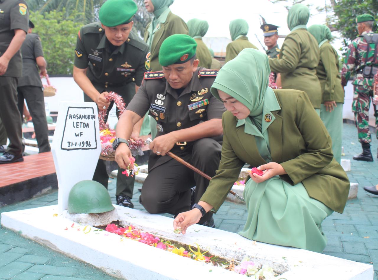 Pada kesempatan tersebut Dandim 0411/LT memimpin langsung para anggotanya dan Persit KCK Cabang XXXI Dim 0411 untuk memberikan penghormatan secara militer kepada jasa-jasa arwah pahlawan kemudian dilanjutkan dengan mengheningkan cipta yang dipenuhi doa akan balasan kebaikan dan kesejahteraan kepada para arwah pahlawan dan juga peletakkan karangan bunga sebagai simbolis penghormatan terbesar bagi mereka dan tabur bunga yang memiliki hikmah bahwa jasa mereka tetap harum dirasakan oleh generasi penerus bangsa (DL)
