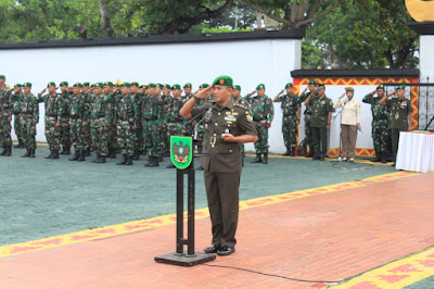 Senin (16/12) selaku Inspektur Upacara Dandim 0411/LT Letkol Czi Burhannudin,S.E.,M.Si. dengan diikuti oleh Pasukan Upacara yang terdiri dari 1 Peleton Perwira dipimpin Pabung Lamteng Mayor Inf Bagus S., 2 Peleton Bintara dan Tamtama dan 1 Peleton Persit Kartika Chandra Kirana Cabang XXXI Dim 0411 dipimpin langsung oleh Ketua Persit KCK Cabang XXXI Ny. Eka Pratiwi Burhannudin.