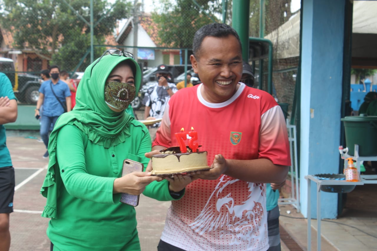Usai melaksanakan kegiatan tenis, kegiatan dilanjutkan surprise dari para peserta tenis lapangan memberikan ucapan selamat ulang tahun yang ke-57 kepada Danrem 043/Gatam, Brigjen Toto Jumariono, S.S, M.I.Kom, oleh Dandim 0411/LT, Letkol Inf Andri Hadiyanto, M.Han beserta Ketua Persit Cabang XXXI Ny. Novi Andri Hadiyanto dan didampingi Unsur Forkopimda, Anggota Kodim 0411/LT dan Club Tenis Korem beserta Club tenis Metro. (DL)