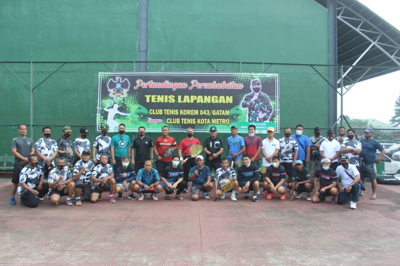 Komandan Korem 043/Gatam Brigjen TNI Toto Jumariono, S.S,M.I.Kom. mengikuti pertandingan Persahabatan Tenis Lapangan dengan Club Tenis Kota Metro, bertempat di Lapangan AB 21 Metro. Minggu (27/09/2020)