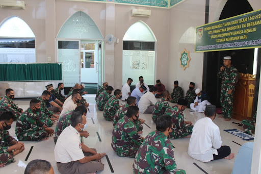 “Dalam memperingati dan menyambut Tahun Baru Islam 1442 H/2020 M yang saat ini masih dalam kodisi pandemik Covid 19, kita harus tetap senantiasa melaksanakan Displin Protokol Kesehatan, semoga kita selalu terhindar dari penyakit Covid 19 dan semoga pandemik Covid 19 cepat berakhir”. ucap Dandim.