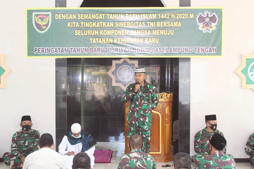 Komando Distrik Militer 0411/LT menggelar doa bersama dalam rangka memperingati 1 Muharram 1442 H/2020 M bertemakan “Dengan Semangat Tahun Baru Islam 1442 H/2020 M Kita Tingkatkan Sinergitas TNI Bersama Seluruh Komponen Bangsa Menuju Tatanan Kehidupan Baru”, bertempat di Masjid Al It-Tihad Makodim 0411/LT Jl. Veteran No. 29 Bedeng 22 Hadimulyo Barat Kota Metro, Rabu (19/08/2020).