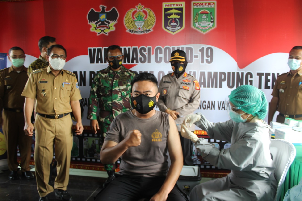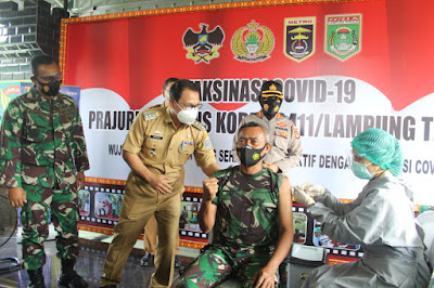 Markas Komando Distrik Militer (Makodim) 0411/LT menjadi sarana kegiatan Launcing Vaksinasi Covid-19 tahap Ke-2, Bagi TNI-POLRI dan Pelayan Publik Kota Metro. Selasa (09/03/2021)