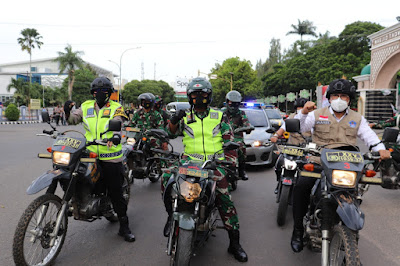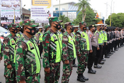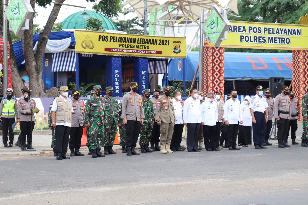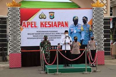 Apel Gabungan Pemkot Metro, Polres Metro dan Kodim 0411/LT Pengamanan Perayaan Malam Takbir Hari Raya Idul Fitri 1442 H di Tengah Pandemi Covid-19 Kota Metro digelar di Jalan Jenderal Sudirman depan Masjid Taqwa Kota Metro. Rabu Sore (12/05/21)