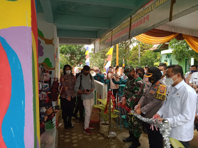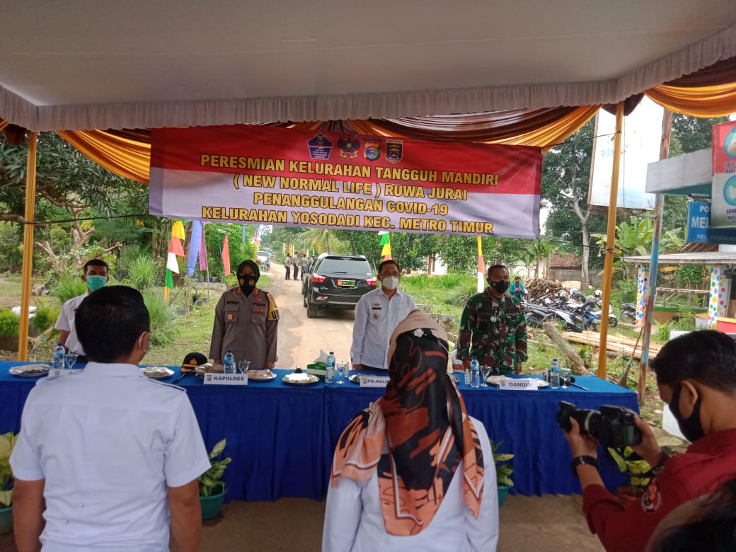 Dandim 0411/LT Letkol Inf Andri Hadiyanto,M.Han. bersama Kapolres Metro AKBP Retno Prihawati,S.,Sos.,S,IK.MH. mendampingi Plh Walikota Metro yang diwakili Asisten II Setda Kota Metro dalam kegiatan Peresmian Kelurahan Tangguh Mandiri Nusantara Ruwa Jurai di Jalan Sepat No 01 Kelurahan Yosodadi Kecamatan Metro Timur. Rabu (24/02/2021).