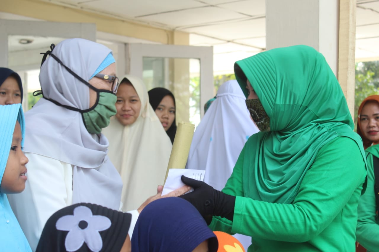 Usai sambutan, Ibu Ketua menyerahkan secara simbolis sembako kepada Ketua Ponpes Hj Siti Roukayah Yasin yang merupakan puteri dari  pasangan Letnan Kolonel K H. Ahmad Yasin dan Ibu Hj Tuma’ninah yasin selaku pendiri pada tahun 1981.