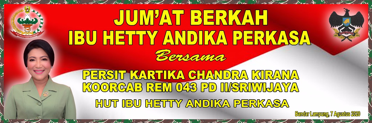 Jumat Berkah Ibu Hetty Andika Perkasa bersama Persit KCK (Kartika Chandra Kirana) Cabang XXXI Dim 0411 Koorcab 043 PD II/Sriwijaya dihiasi dengan aksi peduli di Ponpes Tuma’ninah Yasin Jl. Pala No.51, Metro, Kec. Metro Pusat, Kota Metro, Jumat (07/08/2020)